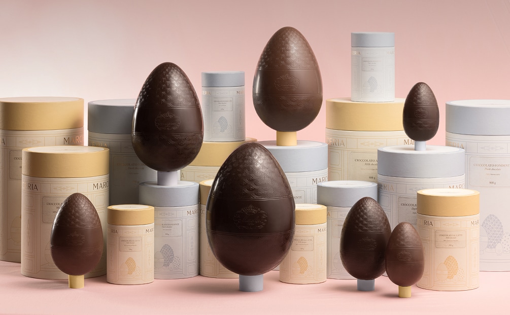 Delicious Easter eggs made with single-origin chocolate: 74% dark from Venezuela and 46% milk from the Dominican Republic.
