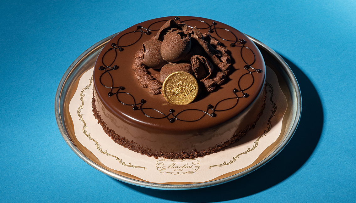 一层红色水果果冻在深沉的口感中切入,带来礼貌而必要的中断,防止整体变得过于舒适,为味觉增添了趣味。顶部的巧克力慕斯和深色巧克力釉将一切抹平,形成统一的表面,光亮而高雅,如同上好的漆器。它介于甜点与中心装饰之间:部分蛋糕,部分为正确享用巧克力而提出的论证。